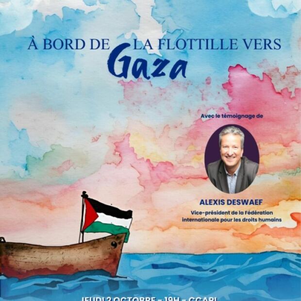 À l’occasion de cette conférence exceptionnelle, il nous partagera son expérience vécue à bord de la flottille pour Gaza. Il nous racontera sa traversée de la mer Méditerranée au sein de ce « convoi de la liberté » qui ambitionne de briser le blocus israélien de la bande de Gaza.